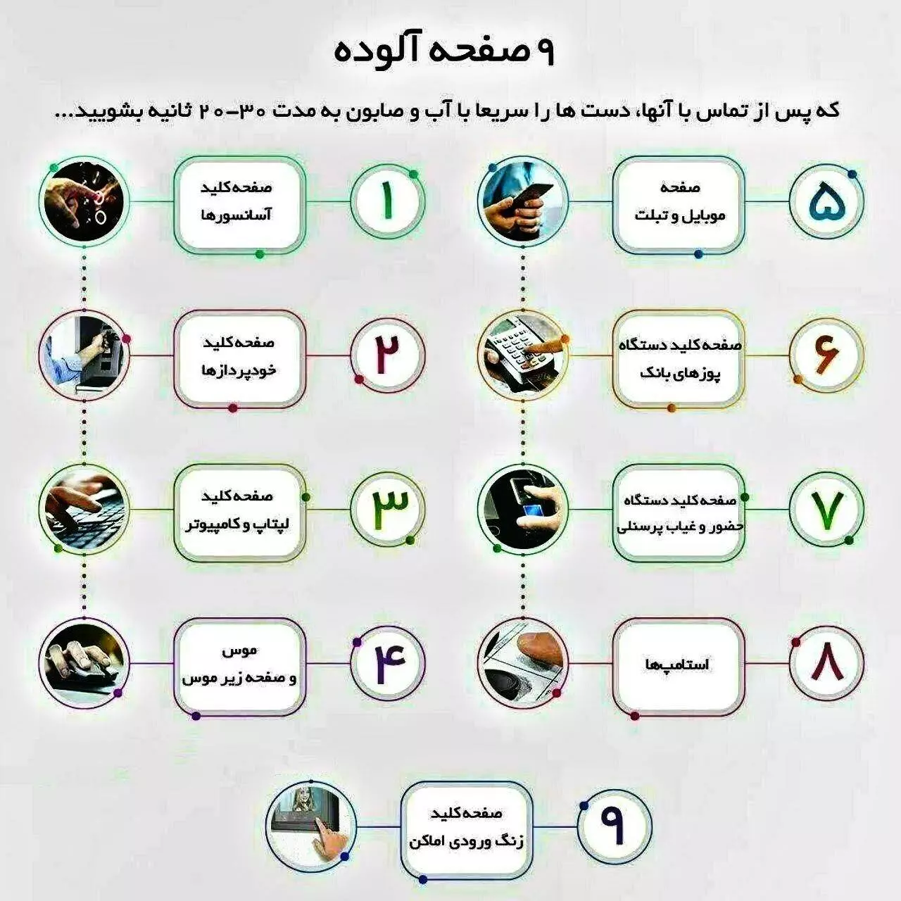 9 مورد از سطوحی که امکان انتقال ویروس را دارند